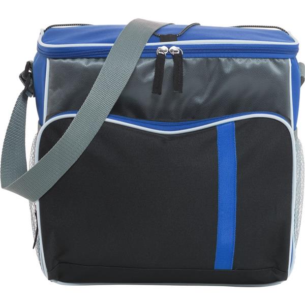 Torba termoizolacyjna z główną przegrodą i przednią kieszenią na zamek błyskawiczny, siateczkowe kieszenie boczne i elastyczny pasek na górze