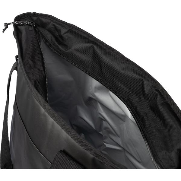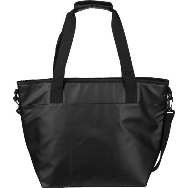 Torba termoizolacyjna, posiada dwa uchwyty do noszenia zapinane na rzep, regulowany pasek na ramię ułatwia noszenie, przednia kieszeń na zamek błyskawiczny, pomoże zachować świeżość żywności oraz napojów, produkt wykonany z poliestru