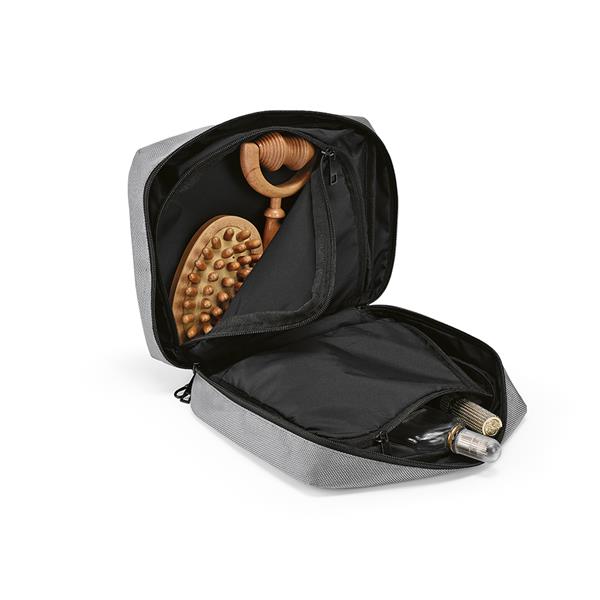 Nasza kosmetyczka to efektywnie zorganizowana i przyjazna dla środowiska konstrukcja wykonana z poliestru 1680D pochodzącego z recyklingu, z powłoką PU. Oferuje również pojemność 4,5L z dwiema przestronnymi przegrodami na suwak i haczykiem do zawieszenia. Idealna do uporządkowania podczas podróży.