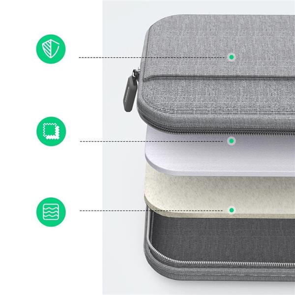Torba UGREEN składa się z trzech warstw. Zewnętrzna zapewnia wysoki poziom ochrony przed wilgocią czy zalaniem wodą. W razie deszczu Twój laptop będzie bezpieczny! Estetyczny wygląd gadżetu jest pewny przez długi czas, po nie jest on podatny na zarysowania.