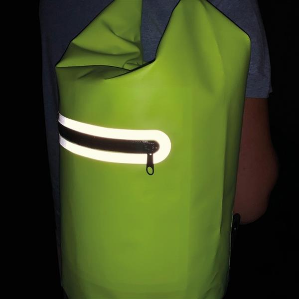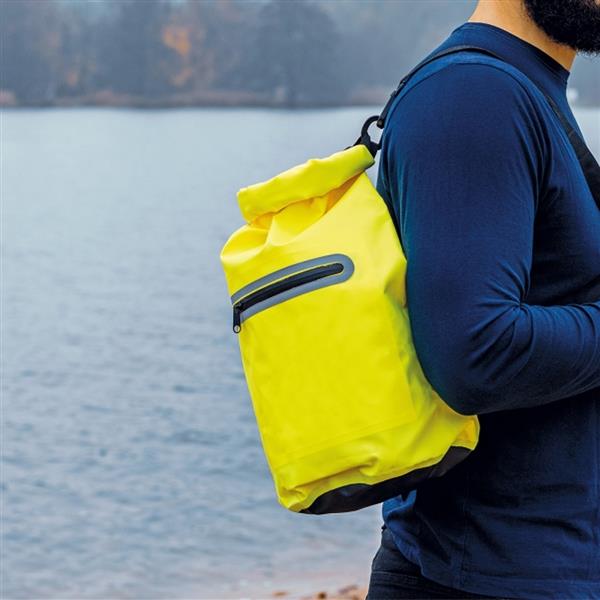 Wodoodporna kurierska torba z PVC 500D w jaskrawym kolorze z elementami odblaskowymi. Pojemność 15 l.