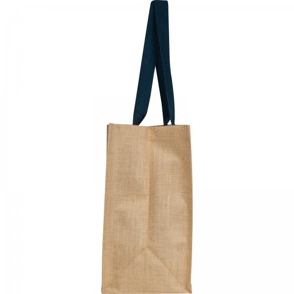 Torba z certyfikatem Oeko-Tex® STANDARD 100, wykonana z juty, z mocnymi bawełnianymi uchwytami. Juta organiczna laminowana, wytrzymała i odporna na rozciąganie.