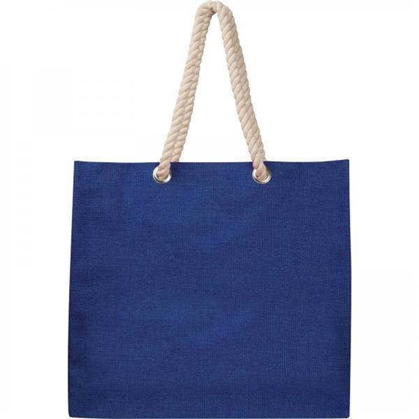 Duża torba na zakupy wykonana z juty z wytrzymałymi uszami z grubego sznura. W zestawie z małym portfelikiem.