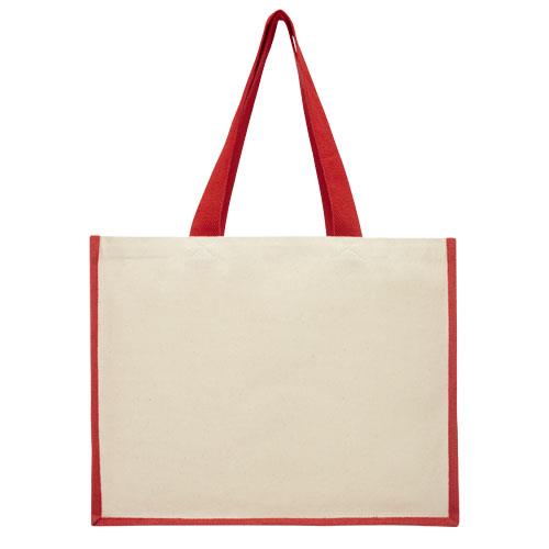 Modna torba na zakupy z panelami bocznymi z łatwego do nadrukowania płótna 320 g/m2 i wyjątkowych ramek z laminowanej juty, z uchwytami z bawełny.