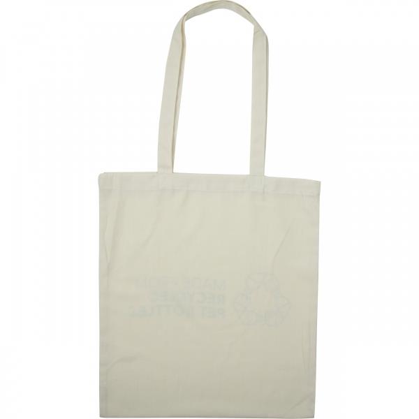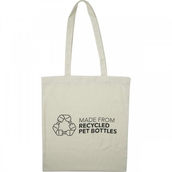 Torba wykonana z RPET pochodzącego z recyklingu, z nadrukiem MADE FROM RECYCLED BOTTLES.
