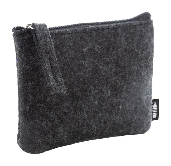 Zapinana na suwak torebka z filcu RPET. Z charakterystyczną metką RPET. Description: Zapinana na suwak torebka z filcu RPET. Z charakterystyczną metką RPET. Primary Color: ciemno szary Material 1: Poliester z recyklingu PET Rozmiar: 105×80×5 mm