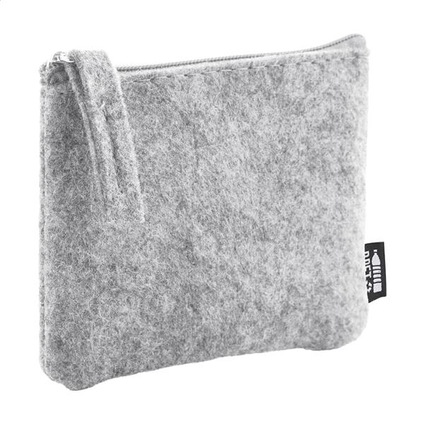Zapinana na suwak torebka z filcu RPET. Z charakterystyczną metką RPET.