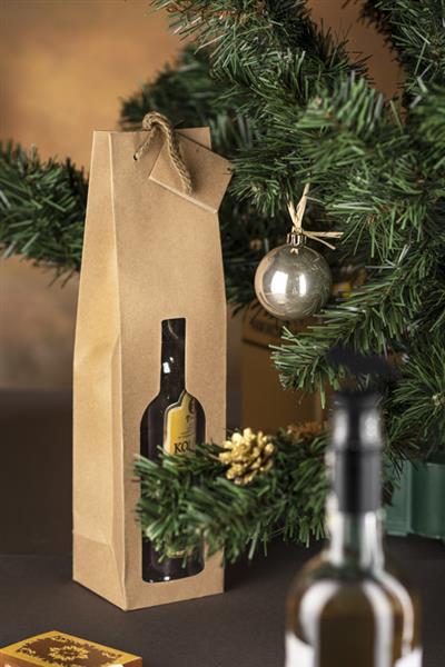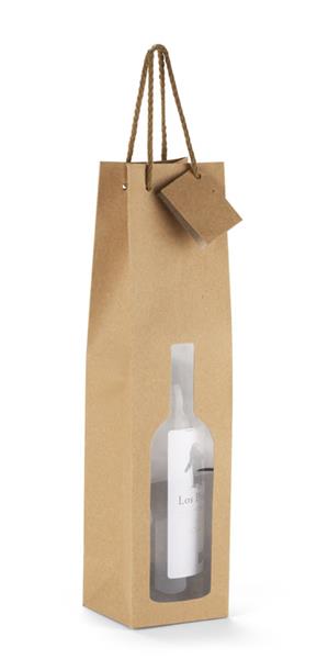 Torebka na wino z okienkiem w kształcie butelki znakomicie wyeksponuje zapakowany w nią produkt. Torebka wykonana jest z papieru.
