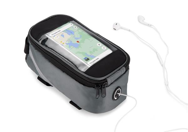 Solidnie mocowana do ramy torba rowerowa posiada pojemną, zapinaną na zamek komorę na drobne przedmioty. Dodatkowo w torbie VELO znajduje się wyjście na słuchawki oraz kieszonka z folią dotykową na smartfona, która umożliwia korzystanie z telefonu bez konieczności wyciągania go z torby. Spoglądanie na nawigację czy sterowanie odtwarzaczem muzyki nie stanowi żadnego problemu, nawet podczas jazdy na rowerze.