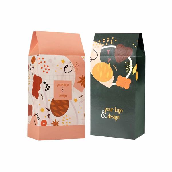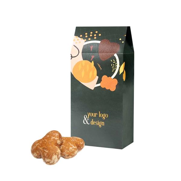 Pierniki zamknięte są w stylowej torebce wykonanej z certyfikowanego papieru FSC. Dostępne są trzy kolorowe opcje: biały, kraft lub écru – papier dodatkiem włókien trawy.