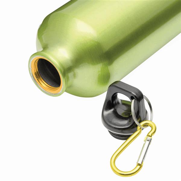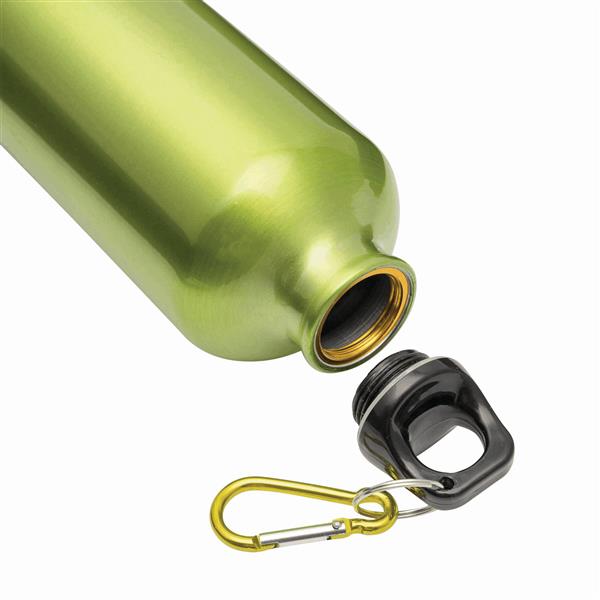 Aluminiowy bidon TRANSIT z dopasowanym kolorystycznie karabińczykiem i zamknięciem na plastikowy zatrzask. Pojemność ok. 400 ml. Materiał: Aluminium/Plastik Kolor: zielony Tagi: Butelki do napojów,artykuły sportowe,fitness,artykuły rekreacyjne,akcesoria podróżne