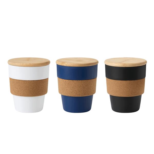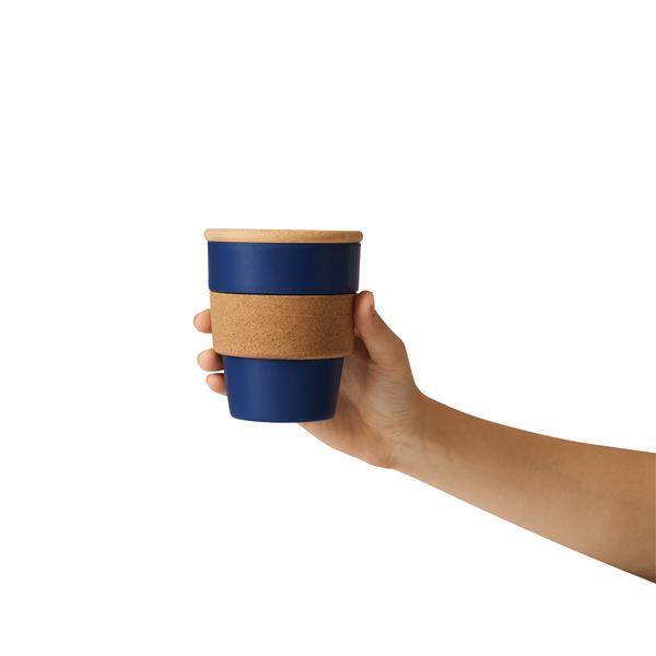 Kubek podróżny TRAVEL GRIP: wykonany jest z plastiku. Posiada korkową powierzchnia ułatwiającą trzymanie, zdejmowaną bambusową pokrywkę z silikonową uszczelką. Pojemność kubka to ok. 350 ml.