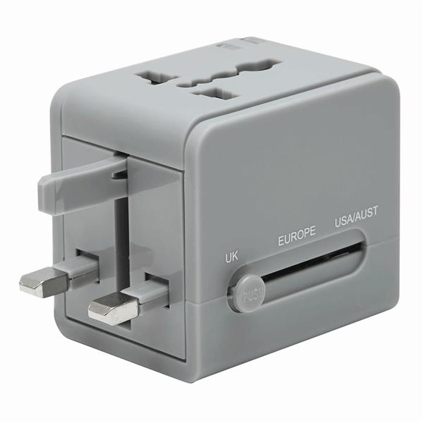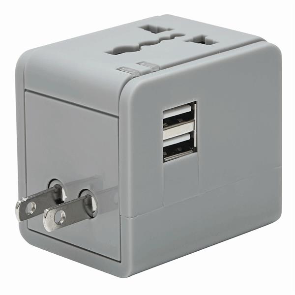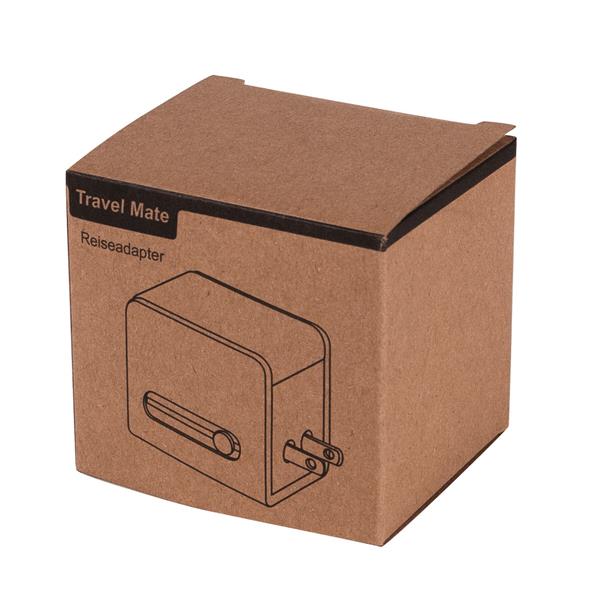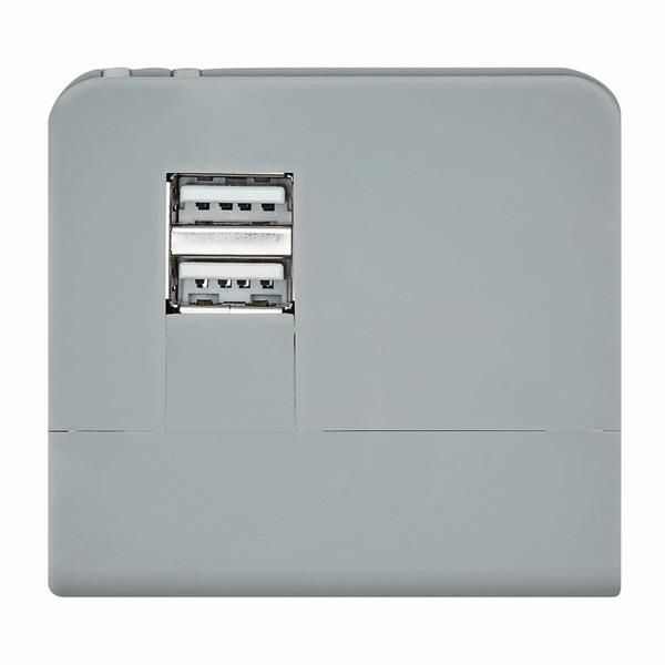Adapter podróżny TRAVEL MATE posiada rozkładane wtyczki przystosowane do gniazdek elektrycznych w UK, Europie, USA, Australii i Azji (nie nadaje się do Szwajcarii). Wyposażony w 2 porty USB 2, 1 A np. do smartfona, tabletu itd., pakowany w pudełko w tym samym kolorze, należy stosować tylko w przypadku urządzeń nieuziemionych.