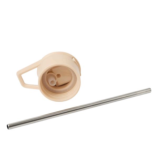 Butelka termiczna TREKSTEEL z podwójną izolacją. Wewnątrz i na zewnątrz wykonana jest ze stali nierdzewnej. Ma bezpieczną plastikową zakrętkę w dopasowanym kolorze, silikonowy pierścień uszczelniający i uchwyt do przenoszenia. Nakrętka typu flip-top ułatwia otwaranie jedną ręką. Posiada wbudowaną słomkę ze stali nierdzewnej z miękkim silikonowym ustnikiem i pojemność ok. 600 ml. Utrzymuje ciepło przez ok. 8 godzin, a zimno do 12. Zapakowana jest w pudełko.