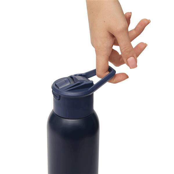 Butelka termiczna TREKSTEEL z podwójną izolacją. Wewnątrz i na zewnątrz wykonana jest ze stali nierdzewnej. Ma bezpieczną plastikową zakrętkę w dopasowanym kolorze, silikonowy pierścień uszczelniający i uchwyt do przenoszenia. Nakrętka typu flip-top ułatwia otwaranie jedną ręką. Posiada wbudowaną słomkę ze stali nierdzewnej z miękkim silikonowym ustnikiem i pojemność ok. 600 ml. Utrzymuje ciepło przez ok. 8 godzin, a zimno do 12. Zapakowana jest w pudełko.