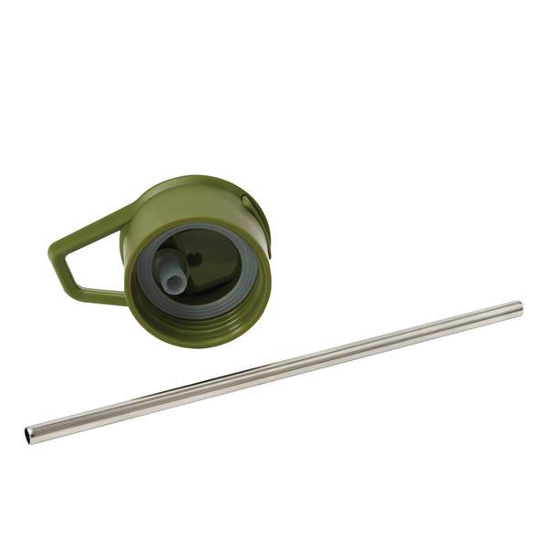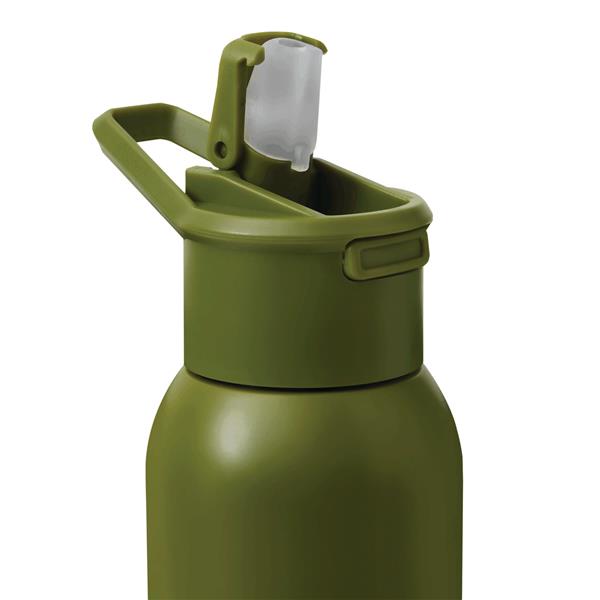Butelka termiczna TREKSTEEL z podwójną izolacją. Wewnątrz i na zewnątrz wykonana jest ze stali nierdzewnej. Ma bezpieczną plastikową zakrętkę w dopasowanym kolorze, silikonowy pierścień uszczelniający i uchwyt do przenoszenia. Nakrętka typu flip-top ułatwia otwaranie jedną ręką. Posiada wbudowaną słomkę ze stali nierdzewnej z miękkim silikonowym ustnikiem i pojemność ok. 600 ml. Utrzymuje ciepło przez ok. 8 godzin, a zimno do 12. Zapakowana jest w pudełko.