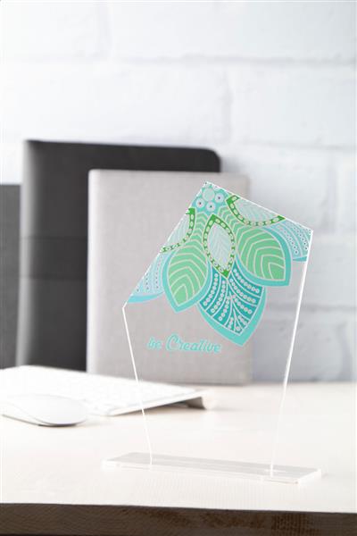 Description: Personalizowane trofeum akrylowe w unikalnym kształcie z full kolorową grafiką. Cena zawiera nadruk UV LED. Min. Ilość: 50szt. Dostarczane złożone a płasko. Primary Color: transparentny Material 1: Akryl Rozmiar: 190×140×50 mm