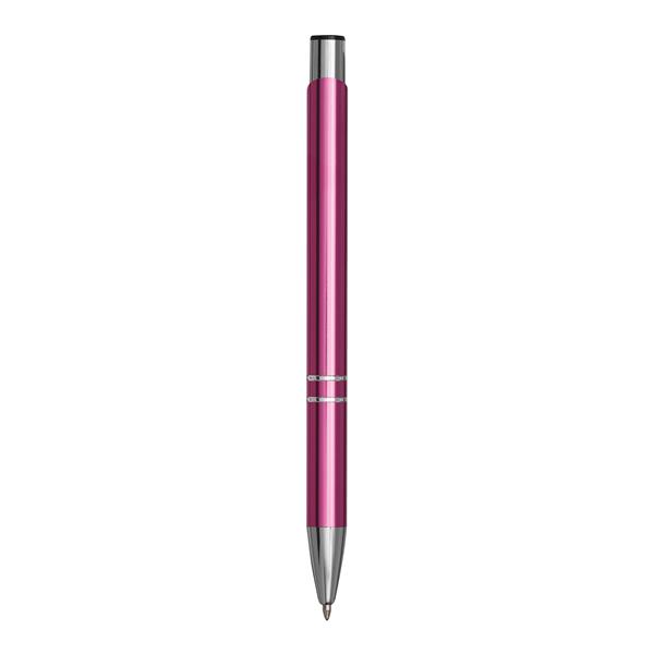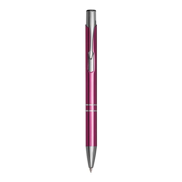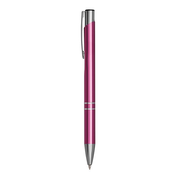 Aluminiowy długopis TUCSON z błyszczącym, metalowym korpusem, mechanizmem dociskowym i dużym, niebieskim wkładem. Materiał: Aluminium/Plastik Kolor: różowy Tagi: Długopisy,długopisy,akcesoria biurowe,przybory do pisania