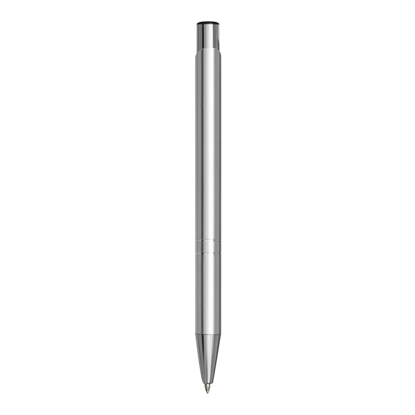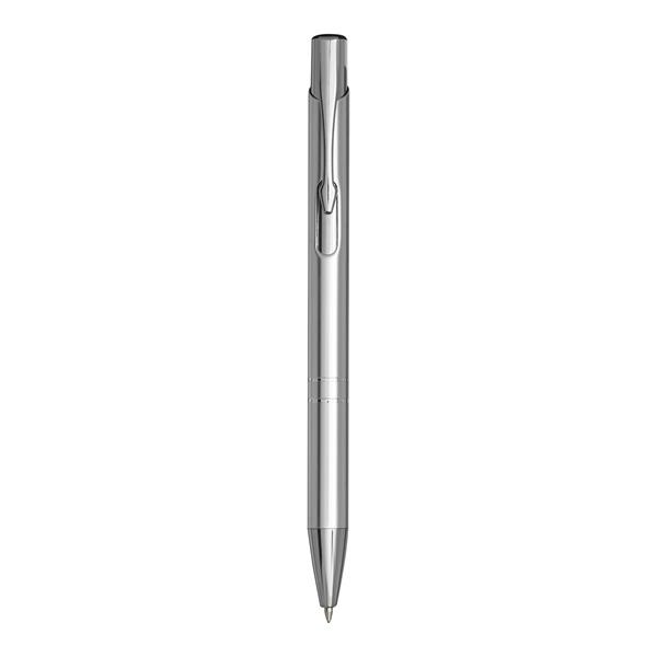 Aluminiowy długopis TUCSON z błyszczącym, metalowym korpusem, mechanizmem dociskowym i dużym, niebieskim wkładem. Materiał: Aluminium/Plastik Kolor: srebrny Tagi: Długopisy,długopisy,akcesoria biurowe,przybory do pisania