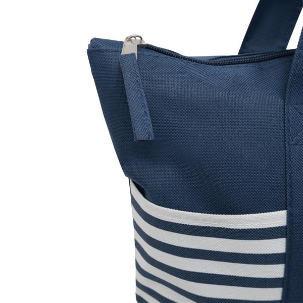 Torba na zakupy TWIN z przegrodą główną z suwakiem, 2 kieszeniami bocznymi z paskami, dwoma długimi uchwytami do przenoszenia. Materiał: 600D Poliester Kolor: biały, niebieski Tagi: Torby na zakupy,skrzynki,shoppers