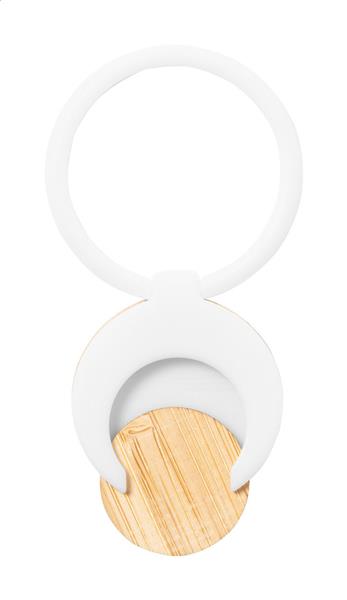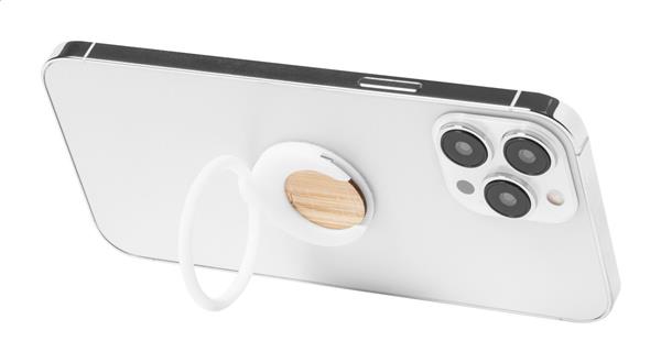 Okrągły uchwyt na telefon z tworzywa ABS z samoprzylepną podstawą i bambusowym żetonem do wózka na zakupy.