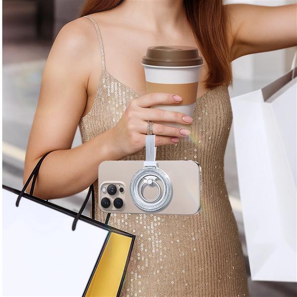 Silne magnesy zapewniają błyskawiczne i stabilne połączenie z MagSafe oraz etui magnetycznymi, a dodatkowy pierścień metalowy umożliwia użycie uchwytu także z innymi smartfonami.