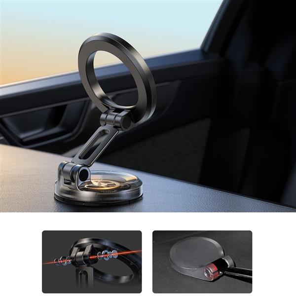 Joyroom JR-ZS505 to solidny uchwyt magnetyczny przeznaczony do montażu na desce rozdzielczej, stworzony z myślą o użytkownikach smartfonów z systemem MagSafe. Zapewnia wyjątkowo mocne trzymanie dzięki podwójnemu układowi magnesów 3 mm + 3 mm oraz stabilnej konstrukcji z podwójnym metalowym zawiasem i ramieniem wspierającym. Uchwyt umożliwia wygodną, jednoręczną obsługę i obrót o 360°, co pozwala dopasować kąt widzenia do własnych potrzeb. Mocna taśma 3M i elastyczna przyssawka gwarantują pewne mocowanie na różnych powierzchniach, a okrągły system wentylacji zapobiega przegrzewaniu się urządzenia. To niezawodny i elegancki dodatek do każdego samochodu.