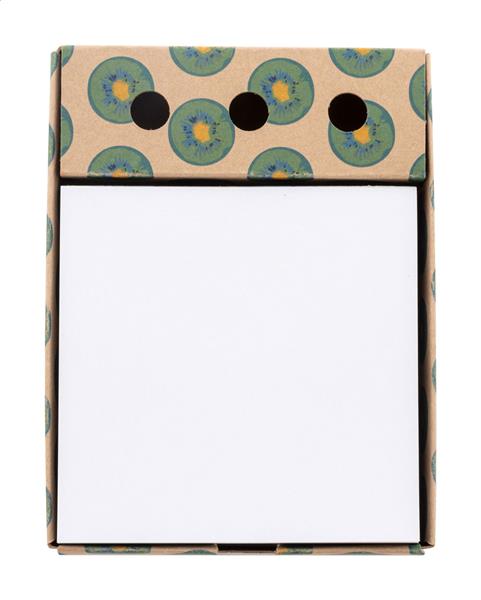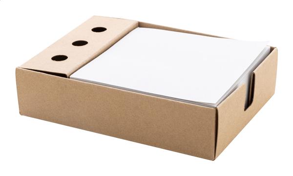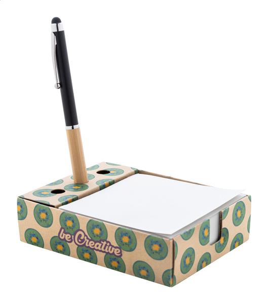 Description: Wykonany na zamówienie przybornik na długopisy i notatki z papieru kraft z blokiem na 300 karteczek memo z papieru z recyklingu (90×90 mm). Cena obejmuje nadruk w pełnym kolorze na uchwycie. MOQ: 100 szt. Primary Color: naturalny Material 1: Papier z recyklingu Rozmiar: 100×128×33 mm