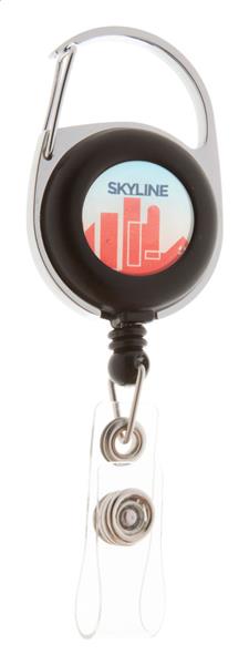Metalowy ski pass z wysuwaną linką i karabinczykiem. Description: Metalowy ski pass z wysuwaną linką i karabinczykiem. Primary Color: czarny Material 1: Metal Material 2: Plastik Rozmiar: 50×35×1 mm