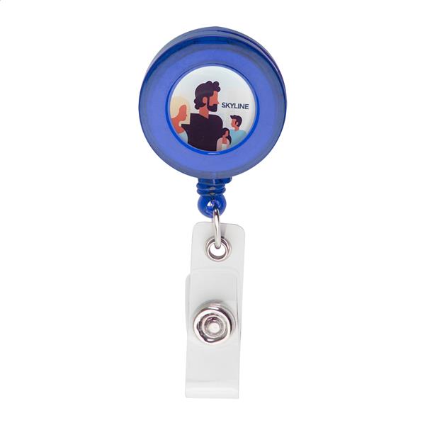 Plastikowy ski pass z wysuwaną linką.