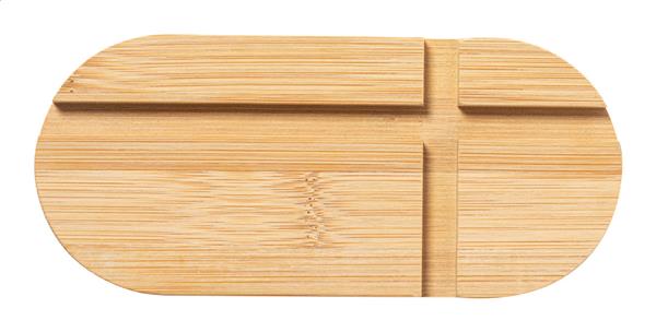 Biurkowy uchwyt na telefon i tablet z bambusa. Description: Biurkowy uchwyt na telefon i tablet z bambusa. Primary Color: naturalny Material 1: Bambus Rozmiar: 170×76×12 mm