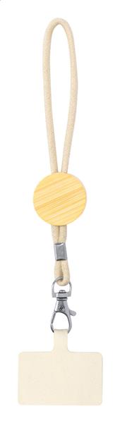 Bawełniany pasek na nadgarstek do uchwytu na telefon z okrągłą bambusową przywieszką, zawieszką na telefon i metalowym karabińczykiem.