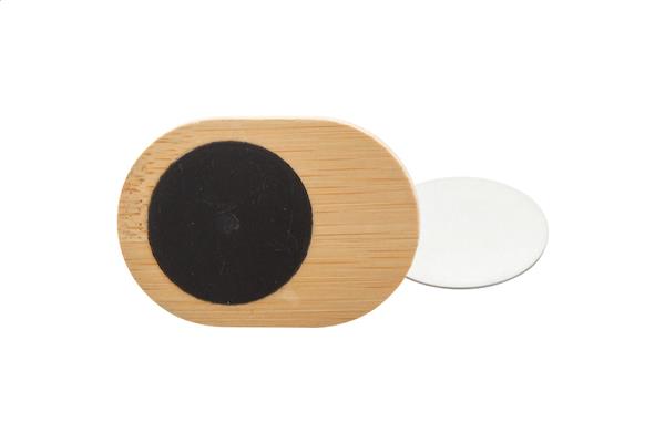 Bambusowy, magnetyczny uchwyt samochodowy na telefon z mocowaniem do kratki wentylacyjnej. Zawiera samoprzylepną metalową płytkę. W kartoniku.