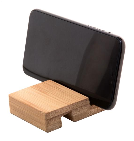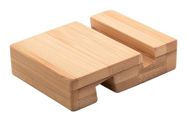 Biurkowy uchwyt na telefon komórkowy i tablet. Wykonany z bambusa. Description: Biurkowy uchwyt na telefon komórkowy i tablet. Wykonany z bambusa. Primary Color: naturalny Material 1: Bambus Rozmiar: 60×80×20 mm
