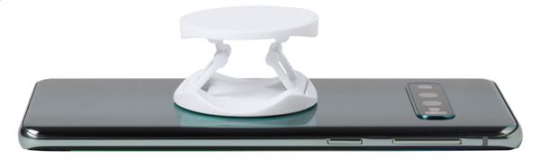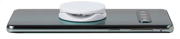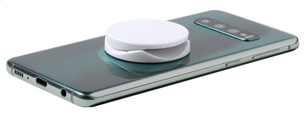 Plastikowy, okrągły uchwyt na telefon z samoprzylepną taśmą.