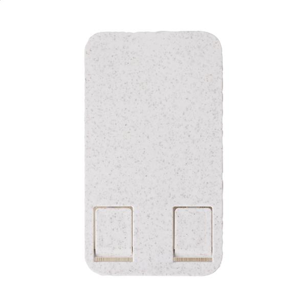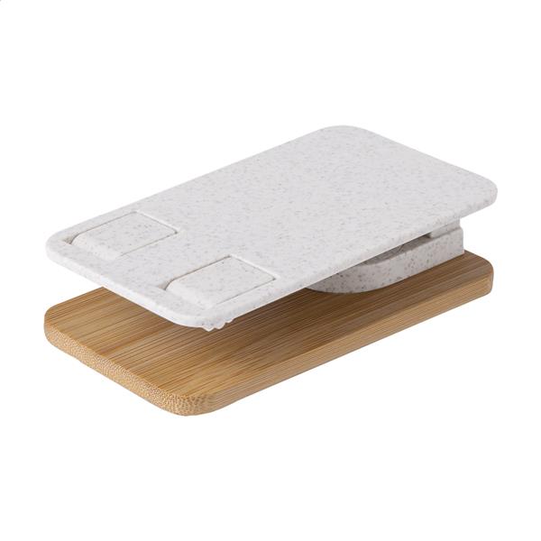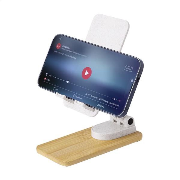 Składany, regulowany uchwyt na telefon biurkowy wykonany z ekologicznego plastiku ze słomy pszenicznej i bambusa.