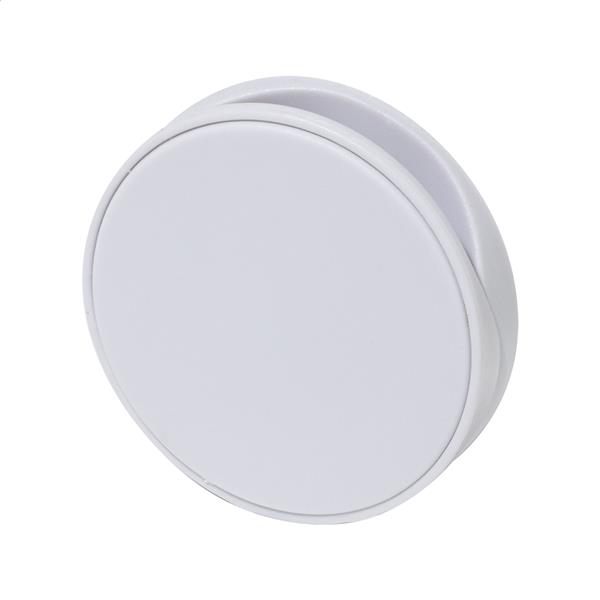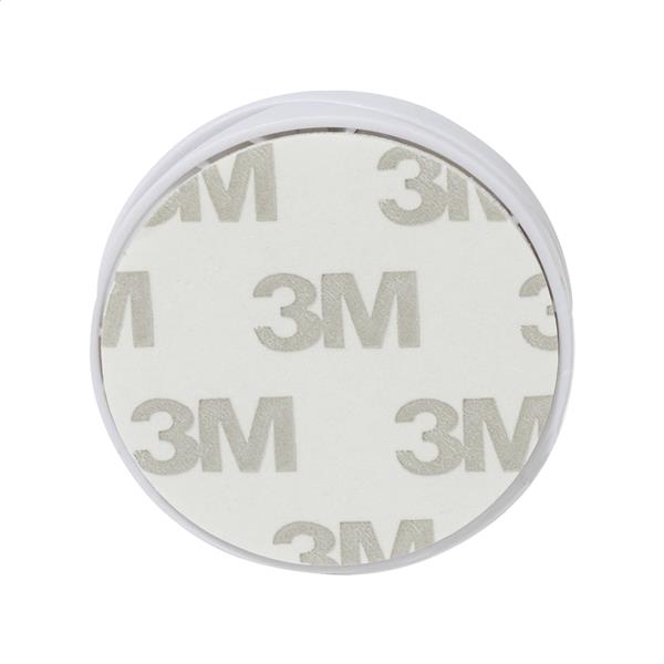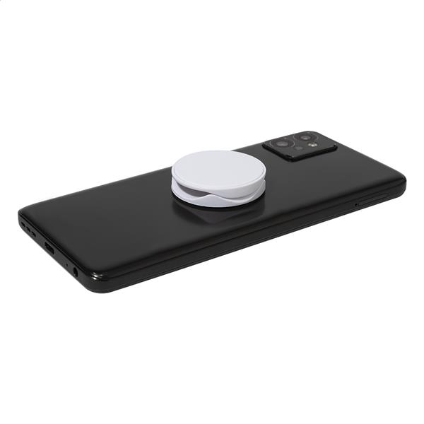 Okrągły uchwyt na telefon wykonany z recyklingowanego tworzywa ABS z samoprzylepną podstawą.