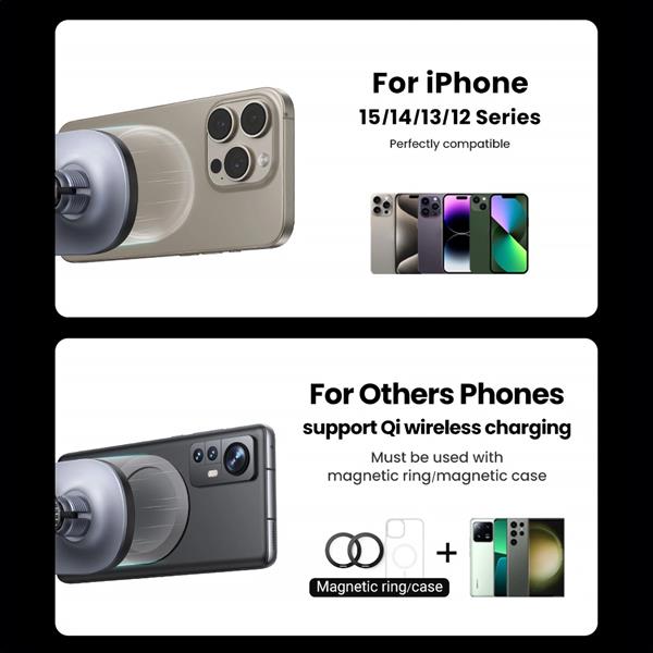 Dzięki funkcji bezprzewodowego ładowania mocą do 15W uchwyt Ugreen CD345 zapewnia, że Twój telefon będzie zawsze gotowy do działania. Zgodność z technologią Qi oznacza, że uchwyt jest uniwersalny i może służyć do ładowania wielu modeli telefonów.