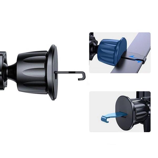 Obrotowa główka 360° daje dużą dowolność konfiguracji, pozwalając na indywidualnie dostosowanie urządzenia do swoich potrzeb. Dzięki haczykowemu montażowi, istnieje możliwość mocowania do dowolnej kratki w samochodzie.