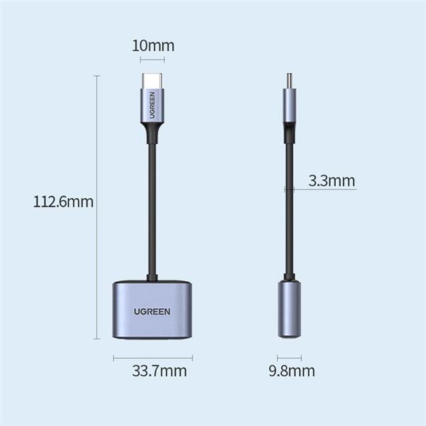 Adapter audio ze złączem USB Typ C do mini jack 3,5 mm i standardem szybkiego ładowania Power Delivery Ugreen – szary (CM231)