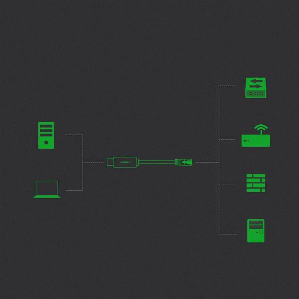 Ugreen kabel konsolowy przejściówka USB – Ethernet RJ45 1,5m czarny (CM204)