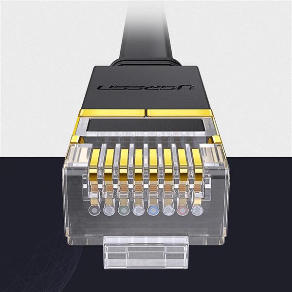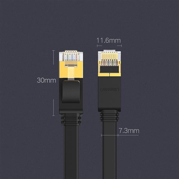 Ugreen kabel sieciowy internetowy Ethernet patchcord U/FTP Cat. 7 10Gb/s płaski 0.5m czarny (NW106)