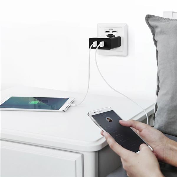 Tylko jedno gniazdko sieciowe, a kilka urządzeń elektronicznych do naładowania? Nie musisz się tym przejmować z ładowarką Ugreen. Podwójny port USB-A daje możliwość jednoczesnego ładowania dwóch urządzeń. Możesz podłączyć ją w dowolnym miejscu, przy łóżku, biurku, a nawet będąc w podróży, aby Twoje sprzęty były zawsze gotowe do pracy. Ładowarka posiada szereg zabezpieczeń zapobiegających przegrzaniu, przeciążeniu. Dodatkowo produkt wyposażono w protokół szybkiego ładowania Quick Charge 3.0, który dostępny jest na obu portach. Łączna moc ładowarki na dwóch portach USB-A wynosi 36W.