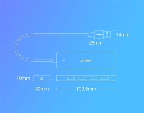 Ugreen rozdzielacz HUB USB – 4x USB 3.2 Gen 1 z portem zasilania micro USB (CM219 50985)