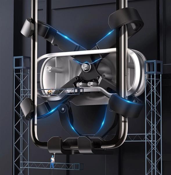Grawitacyjny uchwyt samochodowy do zamontowania na kratce wentylacyjnej auta. Gadżet jest niezwykle prosty w obsłudze, wystarczy odłożyć na niego telefon, a szczęki zamkną się automatycznie. Posiada trójkątną konstrukcję zapewniającą stabilność podczas jazdy, duże możliwości regulacji (w tym obrotu o 360 stopni) oraz gumowe nakładki, dzięki którym nie porysujemy nawiewu. Do tego specjalne wycięcie, które umożliwia podłączenie ładowarki.