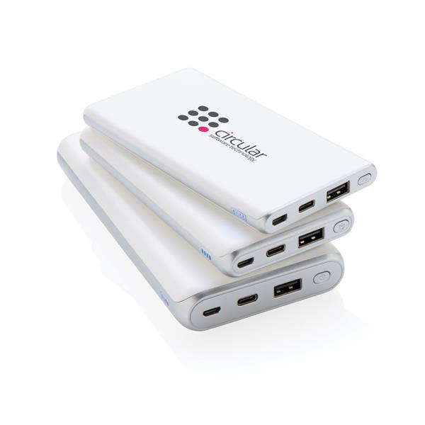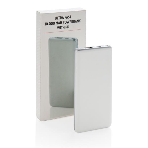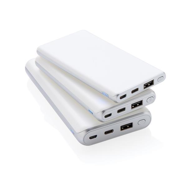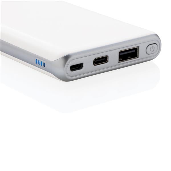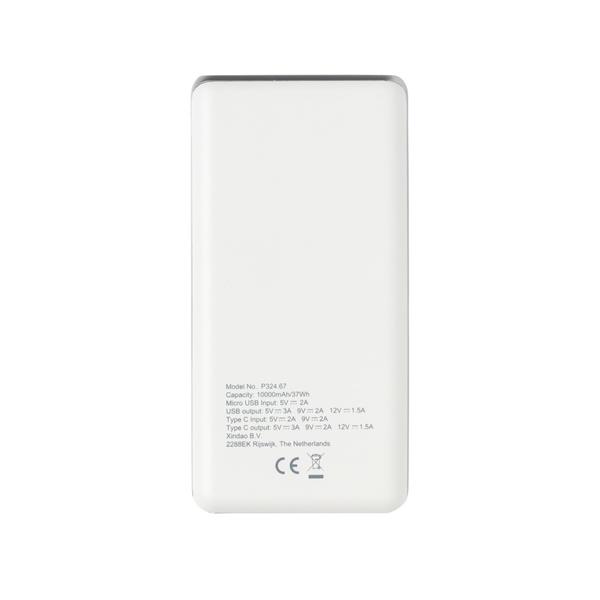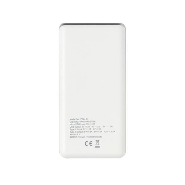 Power bank 10000 mAh z PD, funkcja szybkiego ładowania, 2 wyjścia do ładowania w tym USB i USB typu C do ładowania urządzeń iOS oraz MacBook (max. 18W), wykonany z ABS, wejście micro USB 5V/2A, wyjście USB 5V/3A, 9V/2A, 12V/1.5A, wejście USB typu C 5V/2A, 9V/2A, wyjście USB typu C 5V/3A, 9V/2A, 12V/1.5A, kabel micro USB w komplecie, ślad węglowy produktu: 3,73 kg CO2