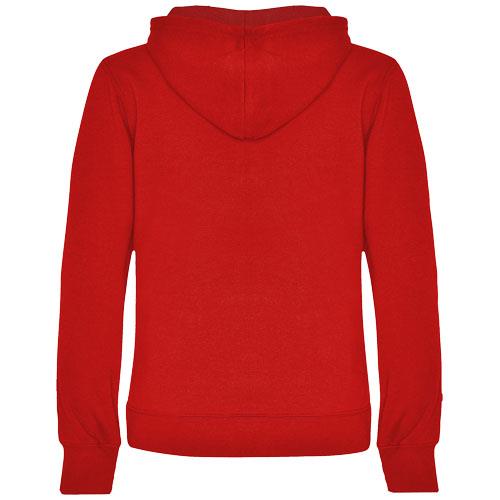 Urban damska bluza z kapturemBluza o dopasowanym kroju z dwukolorowym kapturem z podwójnego materiału, kontrastowym regulowanym sznurkiem, krytymi szwami w kołnierzu i kieszenią kangurką. Ściągacze 1×1 z elastanu w mankietach i u dołu bluzy. Rozcięcie na kciuk. Usuwalna metka. Materiał: Dzianina50% Bawełna, 50% Poliester, 280 g/m2 Kolor: Czerwony