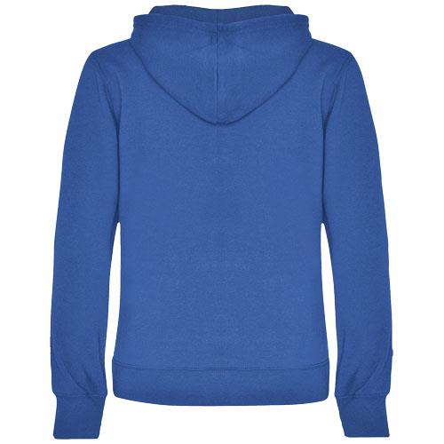 Urban damska bluza z kapturemBluza o dopasowanym kroju z dwukolorowym kapturem z podwójnego materiału, kontrastowym regulowanym sznurkiem, krytymi szwami w kołnierzu i kieszenią kangurką. Ściągacze 1×1 z elastanu w mankietach i u dołu bluzy. Rozcięcie na kciuk. Usuwalna metka. Materiał: Dzianina50% Bawełna, 50% Poliester, 280 g/m2 Kolor: Błękit królewski