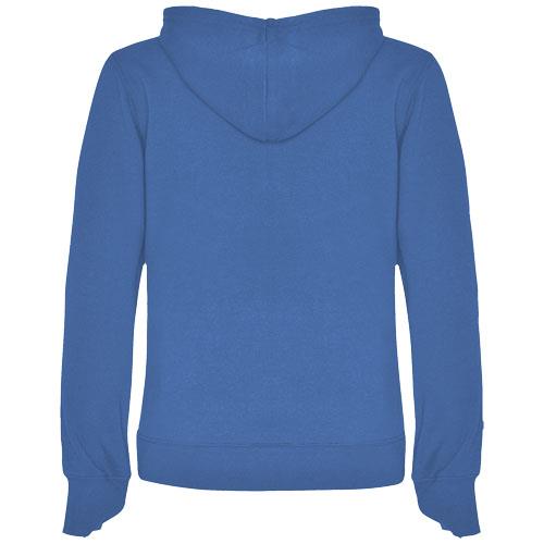 Urban damska bluza z kapturemBluza o dopasowanym kroju z dwukolorowym kapturem z podwójnego materiału, kontrastowym regulowanym sznurkiem, krytymi szwami w kołnierzu i kieszenią kangurką. Ściągacze 1×1 z elastanu w mankietach i u dołu bluzy. Rozcięcie na kciuk. Usuwalna metka. Materiał: Dzianina50% Bawełna, 50% Poliester, 280 g/m2 Kolor: Błękit królewski