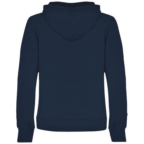 Urban damska bluza z kapturemBluza o dopasowanym kroju z dwukolorowym kapturem z podwójnego materiału, kontrastowym regulowanym sznurkiem, krytymi szwami w kołnierzu i kieszenią kangurką. Ściągacze 1×1 z elastanu w mankietach i u dołu bluzy. Rozcięcie na kciuk. Usuwalna metka. Materiał: Dzianina50% Bawełna, 50% Poliester, 280 g/m2 Kolor: Navy Blue